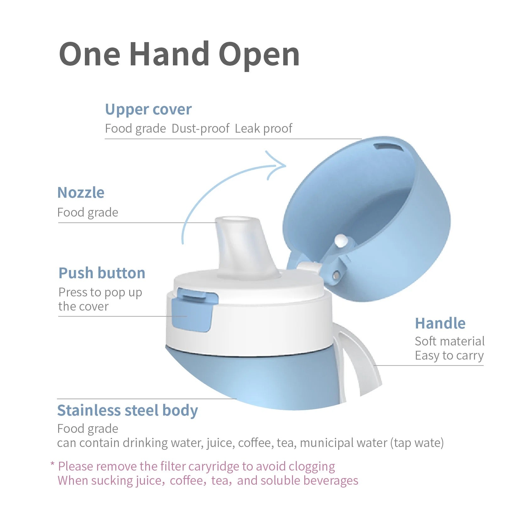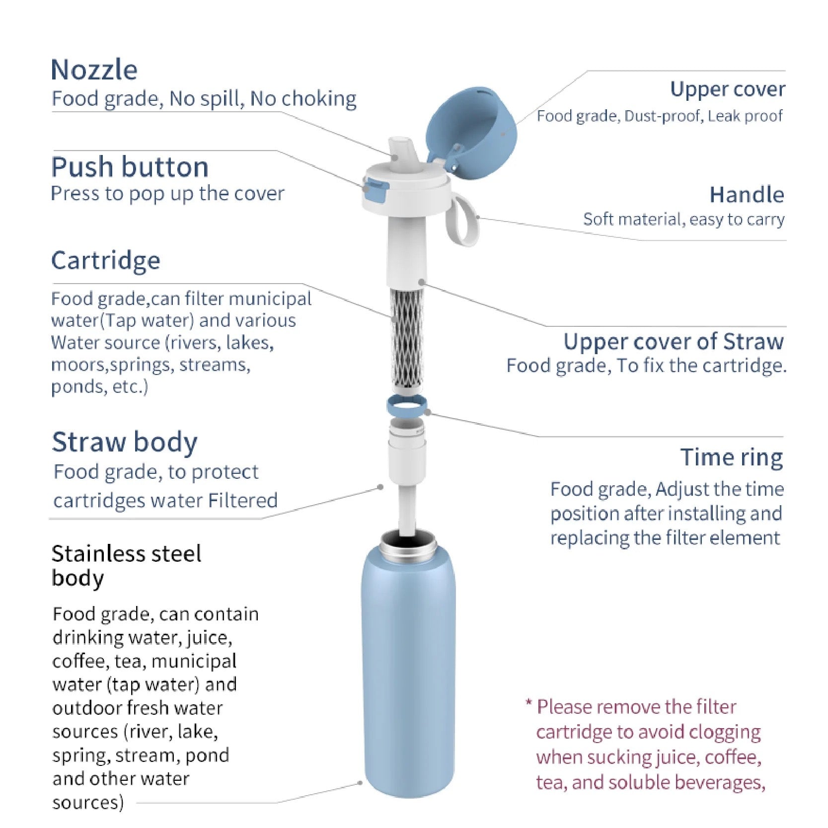 Stay hydrated on the go with this 20oz stainless steel water bottle that provides high-quality filtration for your water. The insulated design keeps your beverage at the ideal temperature, while the knob lid ensures a leak-proof experience. Perfect for both hot and cold drinks, the filter ensures cleaner water.
